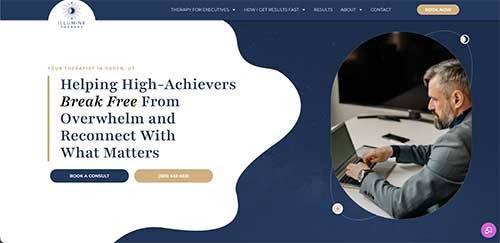 Then, keep scrolling for website samples, testimonials, case studies, and a calendar to book a consult.